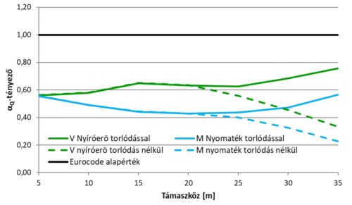 Egy összehasonlító számítás keretein belül megvizsgáltuk, hogy milyen karakterisztikus nyomatéki és nyíró igénybevételek adódnak egynyílású tartók esetén, amennyiben ugyanazt a számítást végezzük el, mint Németországban, csak a Magyarországon mért adatokból kiindulva (4. ábra). Az igénybevételeket összevetettük a szabvány szerinti tehermodellből adódókkal, továbbá rámutattunk a két ország közötti lényeges különbségekre is [19].